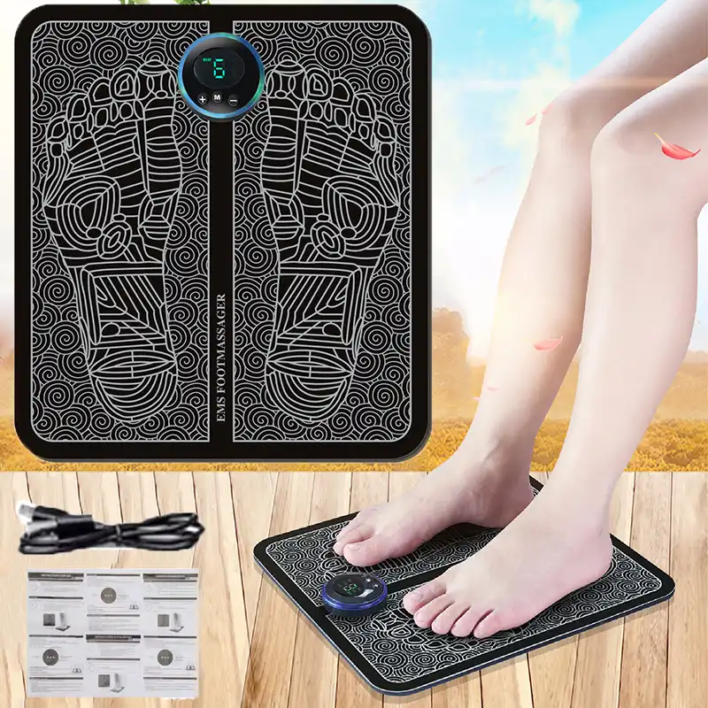 This electric foot massager stimulates the muscles of the feet with low frequency electrical pulse technology, which promotes blood circulation and relaxes the feet.